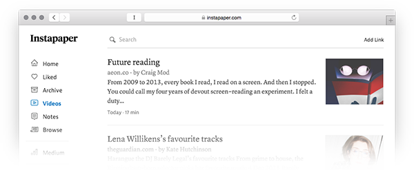 Additionally, the new parser allows us to make the changes necessary to launch the Videos section on instapaper.com, which is something we’ve gotten a lot of requests for!